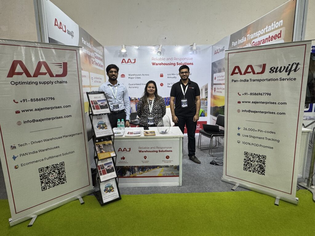 Our Business Development Team—comprising Ambika Gupta, Shreerang Nagral, Sumit Singh, Apoorva Rastogi, and Rishabh—actively engaged with visitors, sharing insights into our tech-driven warehousing systems, pan-India transportation network, and commitment to sustainable logistics practices. Key features such as real-time tracking, 100% POD promise, and access to over 26,000+ pin codes were highlighted, showcasing AAJ Enterprises as a trusted partner for businesses in the EV industry.
